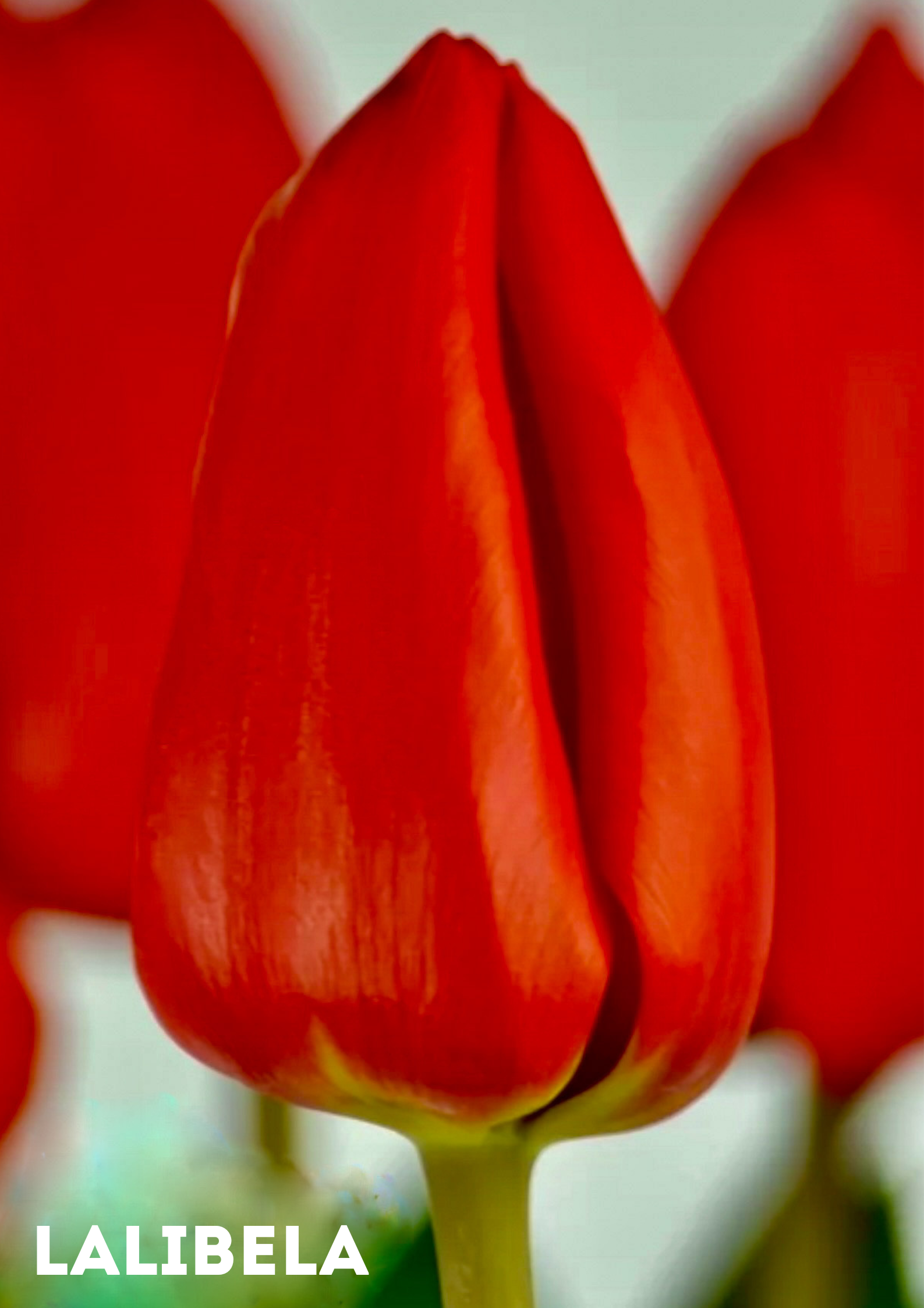 Тюльпан Lalibela — яркий красный сорт из группы Дарвиновы гибриды с крупным классическим бутоном и высоким стеблем; относится к среднецветущим сортам (EPW 46), отличается хорошей устойчивостью и подходит для выгонки в воде после обработки при 9 °C, широко используется для срезки и украшения весенних клумб.