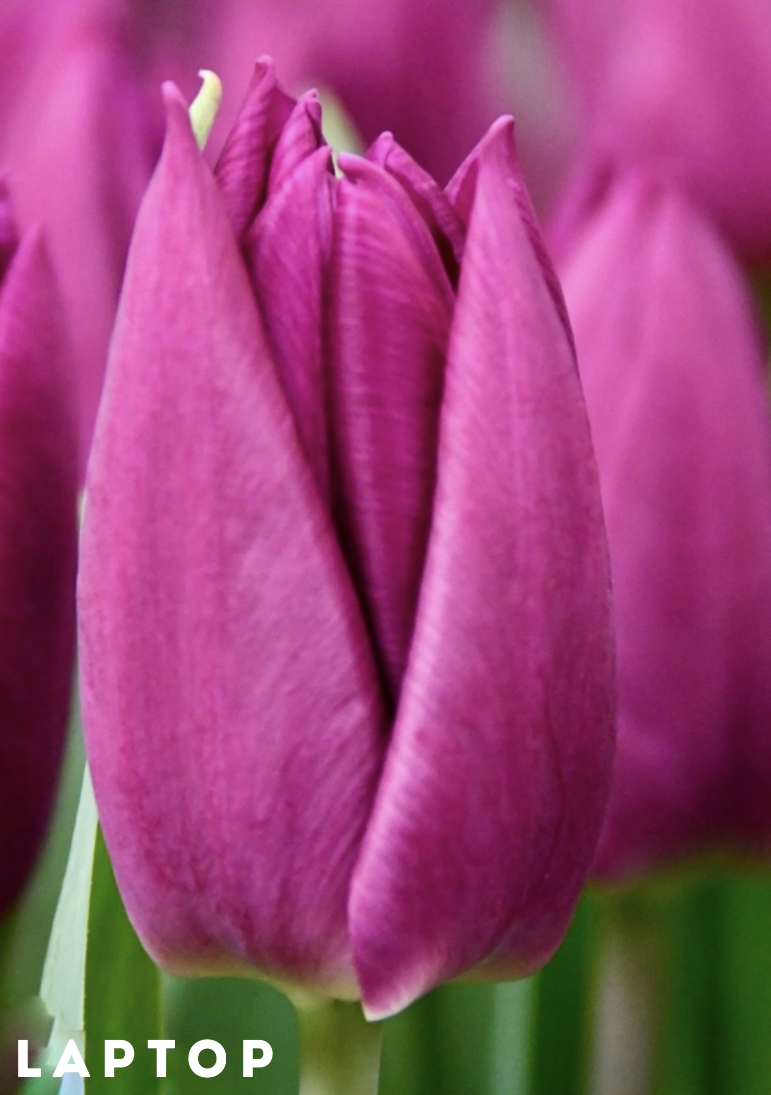 Тюльпан Laptop — насыщенно-пурпурный сорт группы Триумф с элегантным классическим бутоном; относится к раннецветущим сортам (EPW 46), отличается компактной высотой стебля, подходит для выгонки в воде после обработки при 9 °C и хорошо смотрится в клумбах, контейнерах и весенних композициях.
