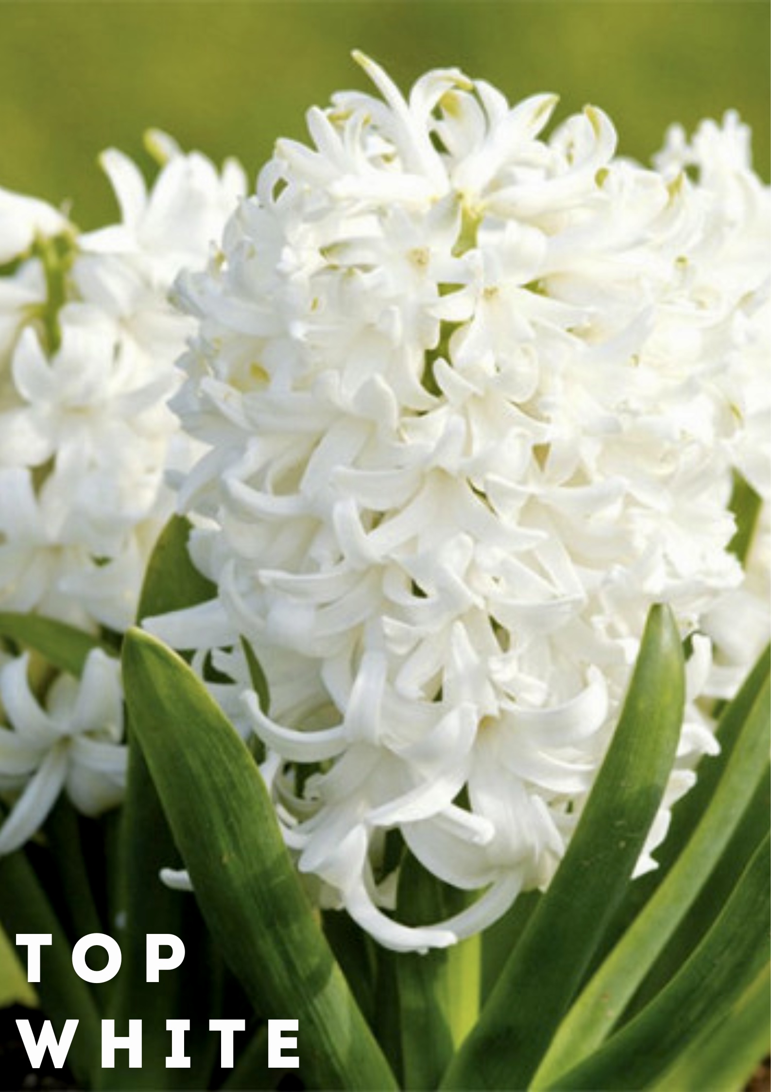 Гиацинт Top White — элегантный сорт группы Orientalis с чисто-белыми цветками и плотным ароматным соцветием на стебле около 25 см, прекрасно подходит для весенних клумб, контейнеров и декоративной выгонки.